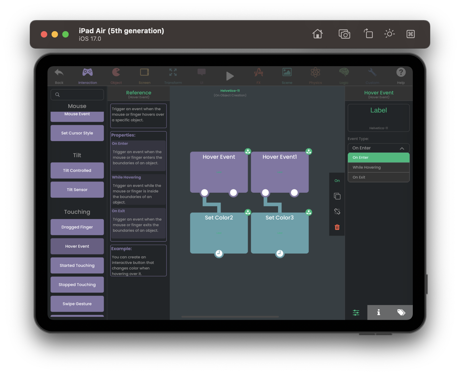 Want your buttons, menus, or objects to respond dynamically? The Hover Event behavior brings your iPad games to life: