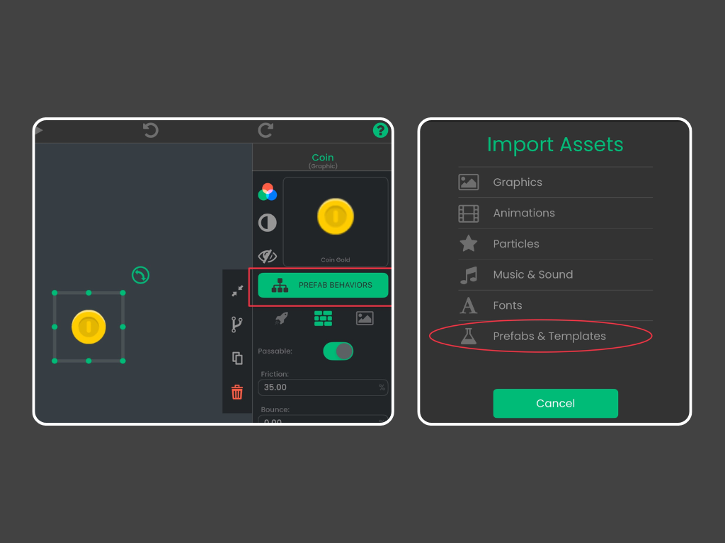 Prefabs and templates make large-scale game design efficient and scalable, turning hyperPad into a professional-level iPad game development tool while remaining accessible to beginners.
