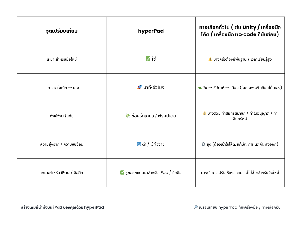 🔎 เปรียบเทียบ hyperPad กับเครื่องมือ / ทางเลือกอื่น