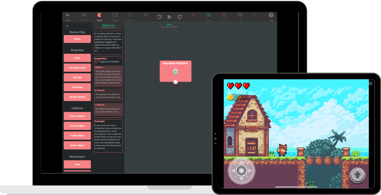 Our intuitive drag-and-drop interface allows students of all ages to quickly create amazing games and apps.